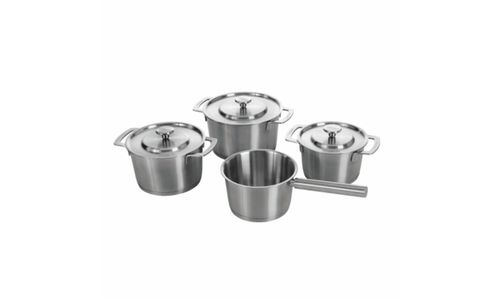 De gerecyclede roestvrijstalen kookset is gemaakt van hoogwaardig gerecycled roestvrij staal en kan worden gebruikt voor het koken van groenten, eieren, pasta en meer. De Recycled RVS Kookset bestaat uit één steelpan met een zilveren ronde handgreep en drie verschillende maten zilveren pannen met deksels. De deksels zijn voorzien van een typisch COMBEKK design en logo's op de knop en handgrepen. De kookset is gemaakt van gerecycled RVS staal en is perfect voor dagelijks gebruik in de keuken. Voeg de fijne, grote soep toe