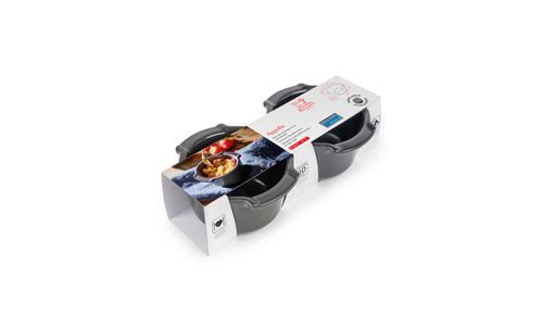 Laat je creativiteit de vrije loop met deze veelzijdige en slimme keramische ovenschaaltjes van Peugeot. Clafoutis, zelfgemaakte flans of nagerechten met fruit of chocolade? Niets is te gek! Dankzij de hoogwaardige keramiek garen al je gerechten grondig en gelijkmatig. Ze kregen handgrepen, zodat je ze veilig van de oven naar de tafel draagt. Hun elegante leisteengrijze kleur met satijnglans zal prachtig staan op je borden!